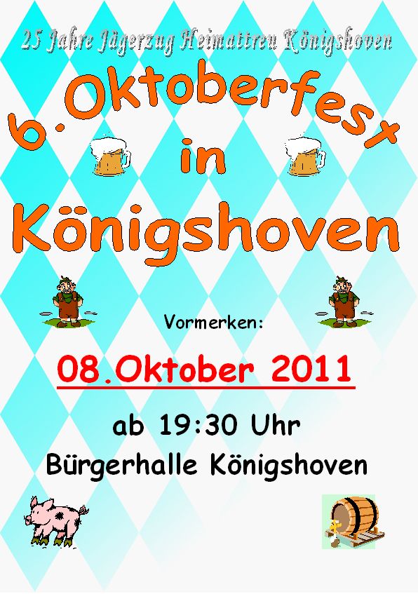 Vormerken : O' Zapft is !!! 6. Oktoberfest in Königshoven !